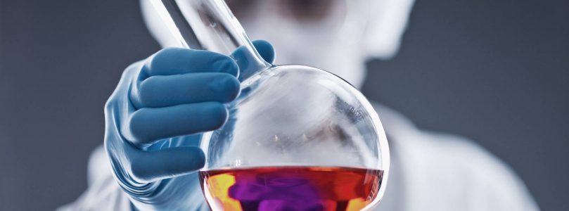 En el matraz de reacción química Fotografía de stock - Alamy